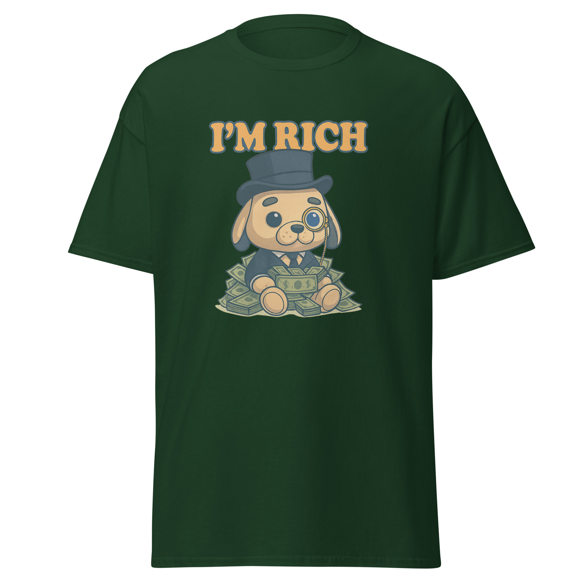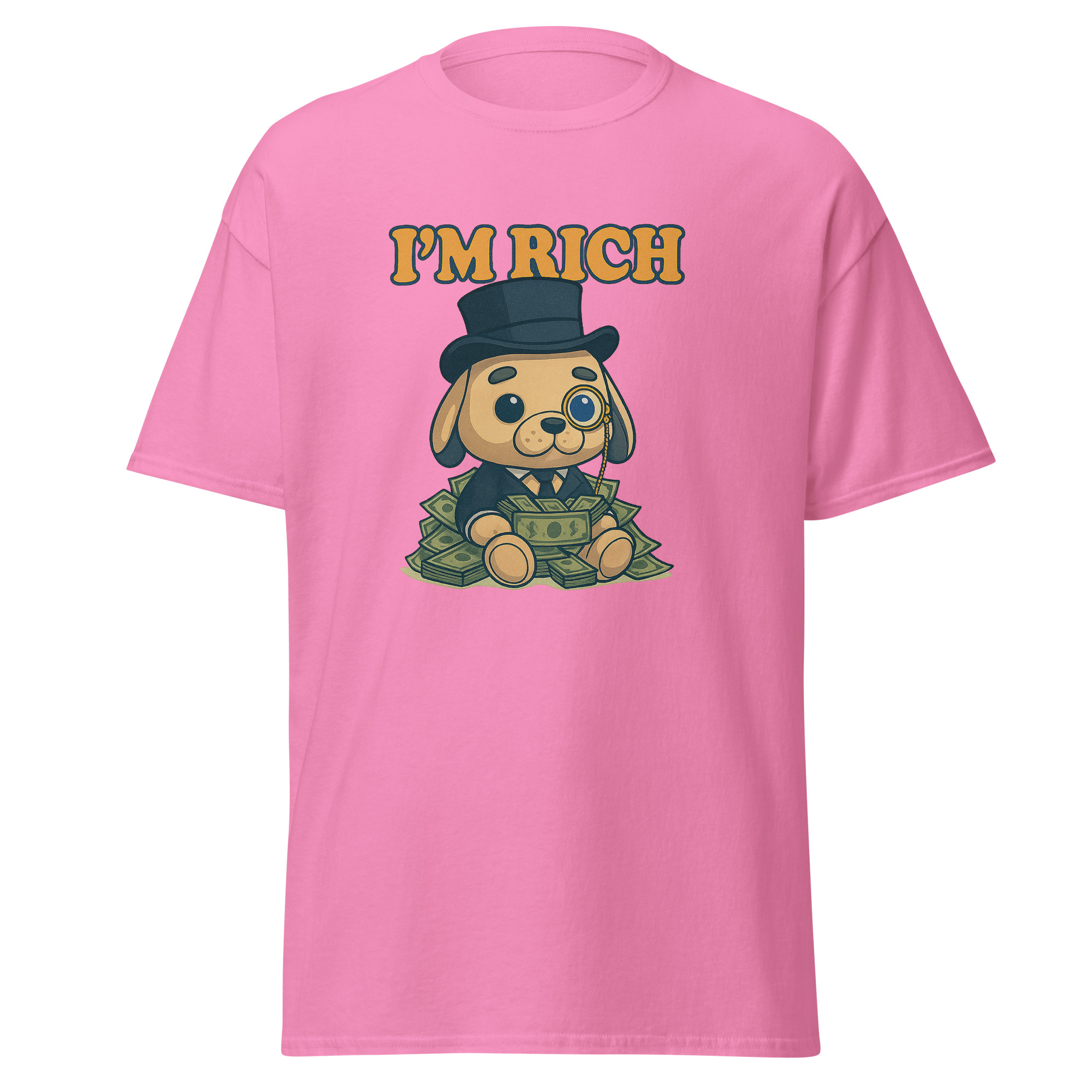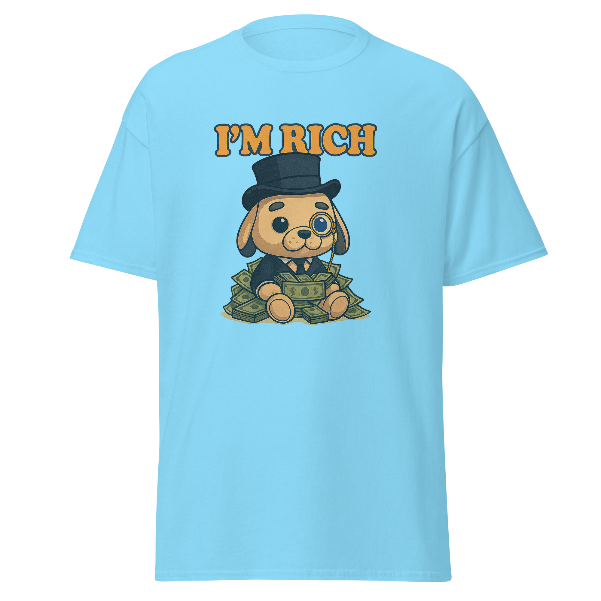 Esta camiseta mezcla elegancia absurda y humor visual en su máxima expresión. Porque tener estilo también es una forma de riqueza.